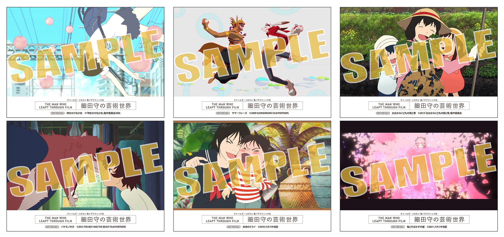 細田守監督作品の魅力をあますことなく掲載した『THE MAN WHO LEAPT THROUGH FILM 細田守の芸術世界』(2022年7月発売・グラフィック社)を、全国アニメイト・アニメイト通販でご購入いただいたお客様に、購入特典として、『時をかける少女』『サマーウォーズ』『おおかみこどもの雨と雪』『バケモノの子』『未来のミライ』『竜とそばかすの姫』の名シーンのブロマイド6枚1組を先着で差し上げます。