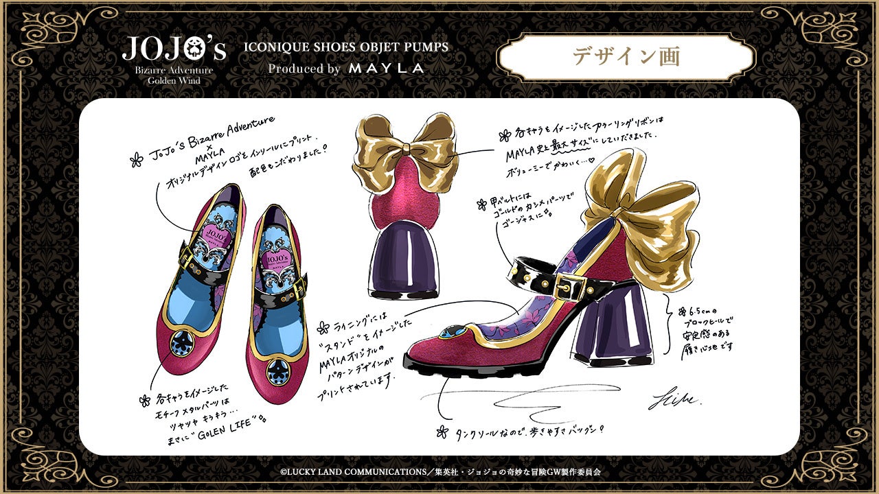 アニメ『ジョジョの奇妙な冒険 黄金の風』のパンプスが登場!2024年8月9日(金)17:00より予約販売開始!Produced by MAYLA