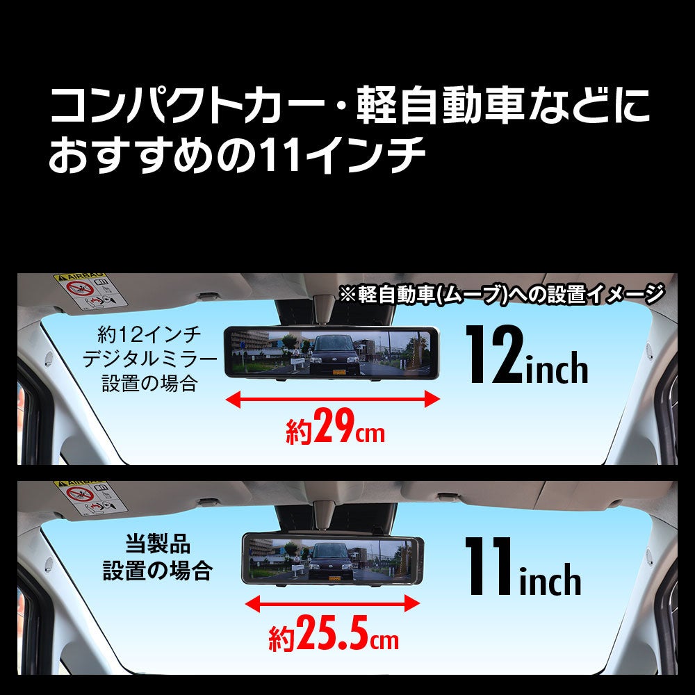 - コンパクトカーや軽自動車にもオススメな11inchのモニター