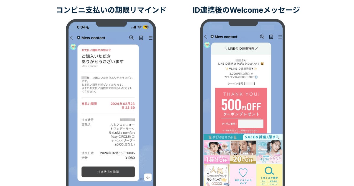 Mew contact 公式サイト「LINEのID連携でもっとお得&便利に!」:https://contact.mewshop.jp/blogs/information/line-id