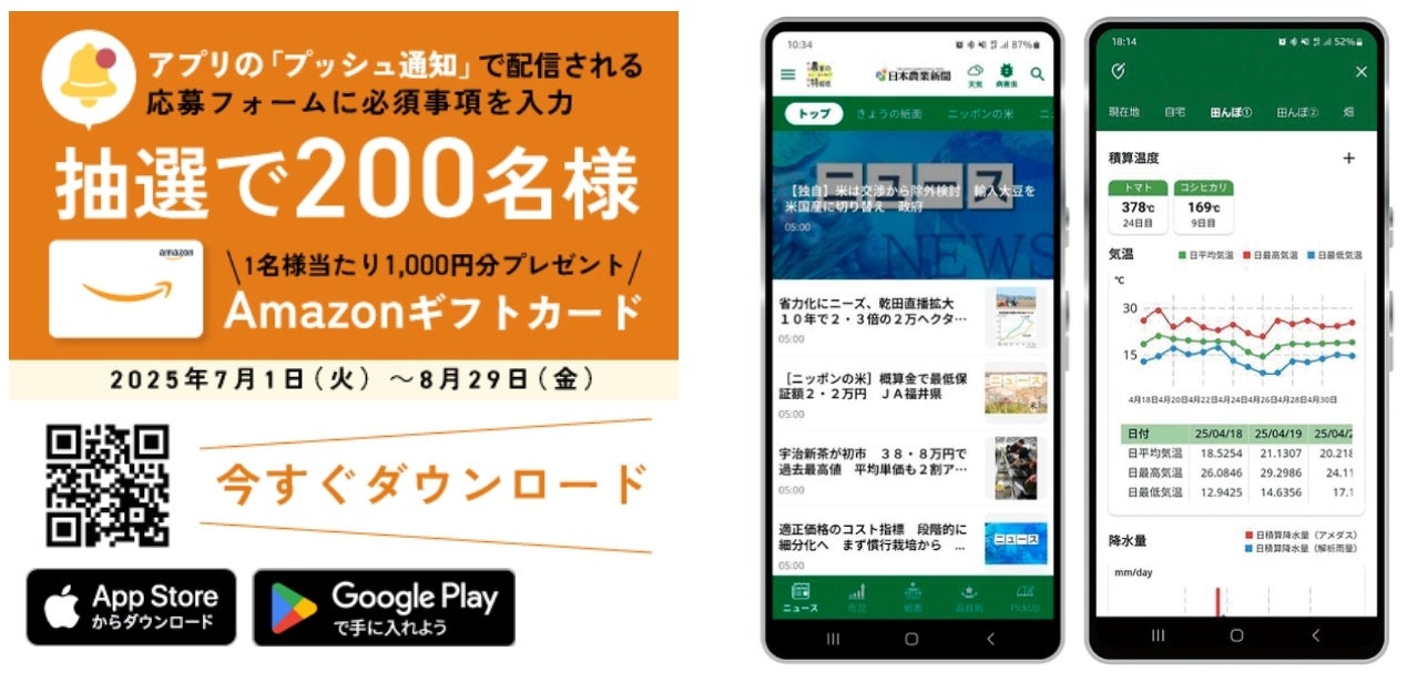 Amazonギフトカードが抽選で200名様に当たる!「日本農業新聞ニュースアプリ」ダウンロードキャンペーン