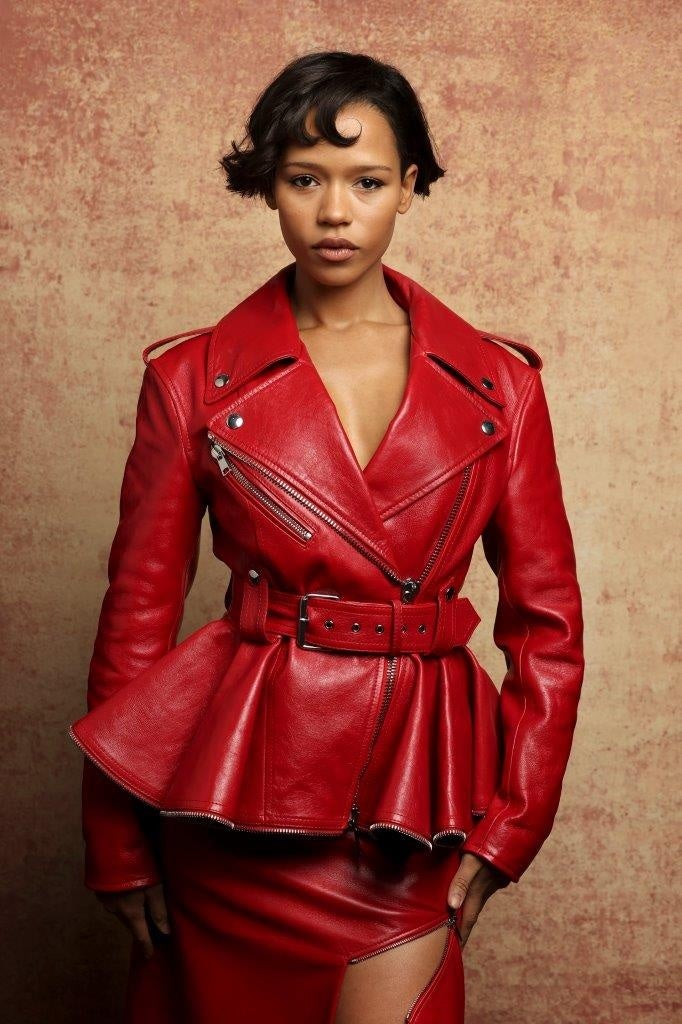 1月14日にロサンゼルスで開催された「英国映画テレビ芸術アカデミー(BAFTA)のティーパーティー」にて、テイラー・ラッセルが2023年秋冬プレコレクションより、レッドのレザーを用いたペプラムバイカージャケットとスラッシュが特徴的なスカート、ジュエルドホーボーミニバッグ、ストラップサンダルを着用して登場しました。
