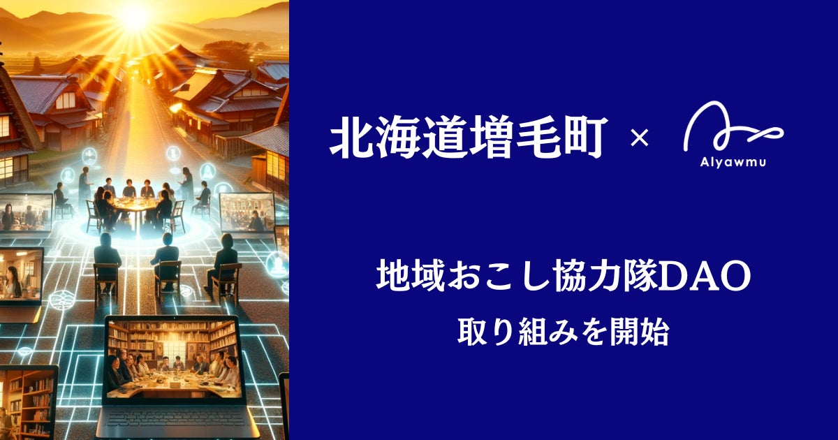 株式会社あるやうむは「地域おこし協力隊」と「デジタルコミュニティ(DAO)」を掛け合わせて地域を活性化するサービス『地域おこし協力隊DAO』の取り組み北海道第二弾を、北海道増毛町で開始します。地域おこし協力隊員がつくるDAOによる「関係人口創出」と「イノベーティブな地域課題の解決」が目的です。自治体のDAO設立への取り組みを推進し、地域活性化とDXを加速させます。本取り組みは2024年10月1日から開始しております。※本取り組みはデジ田交付金での対応も可