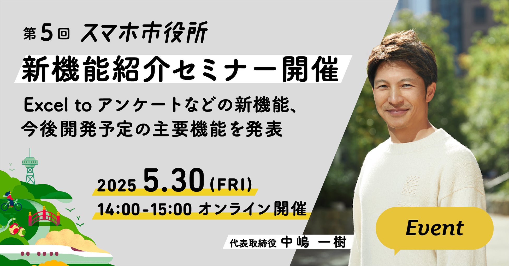 皆様の「スマホ市役所」をより充実させていくための次のステップとして、本セミナーをぜひご活用ください。共に、行政サービス、そして住民の暮らしをアップデートしていきましょう。ご参加お待ちしております。