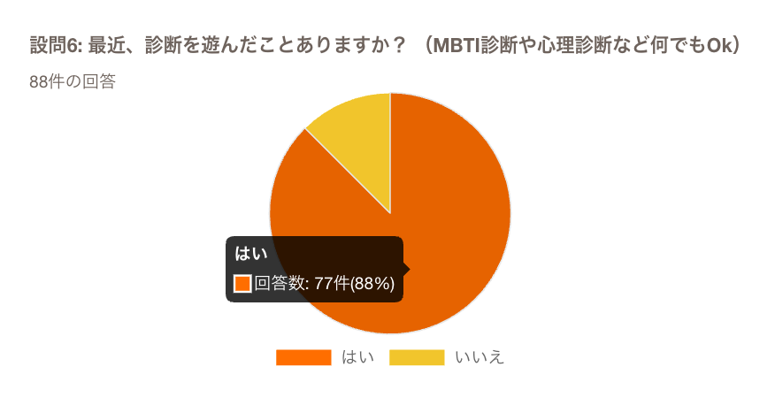 最近、診断で遊んだことはありますか?という質問には、88%が「はい」と回答しています。