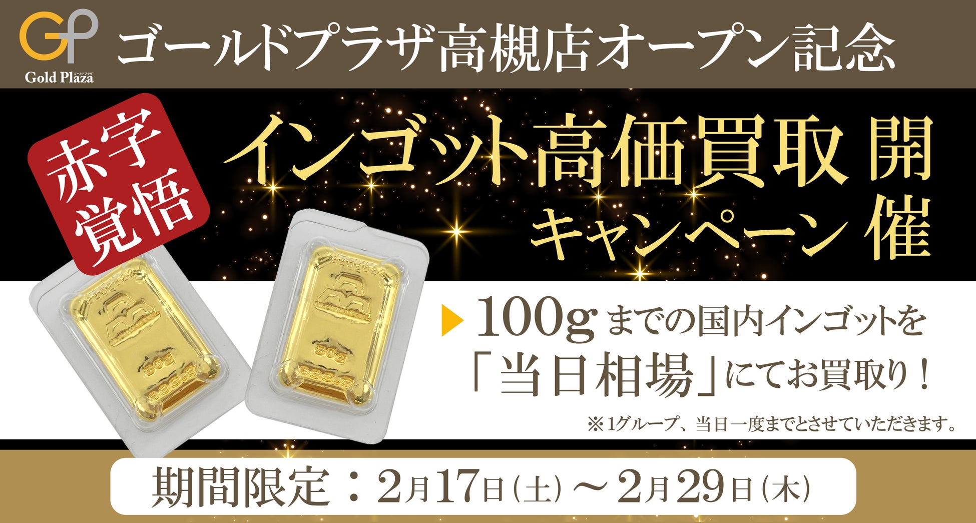 【ゴールドプラザ】高槻店オープン記念!インゴット高価買取キャンペーン!!