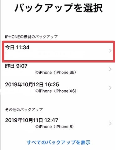 Step2:画面の指示に従い、復元するバックアップデータを選択して、初期設定を進めるとデータを復元できます。