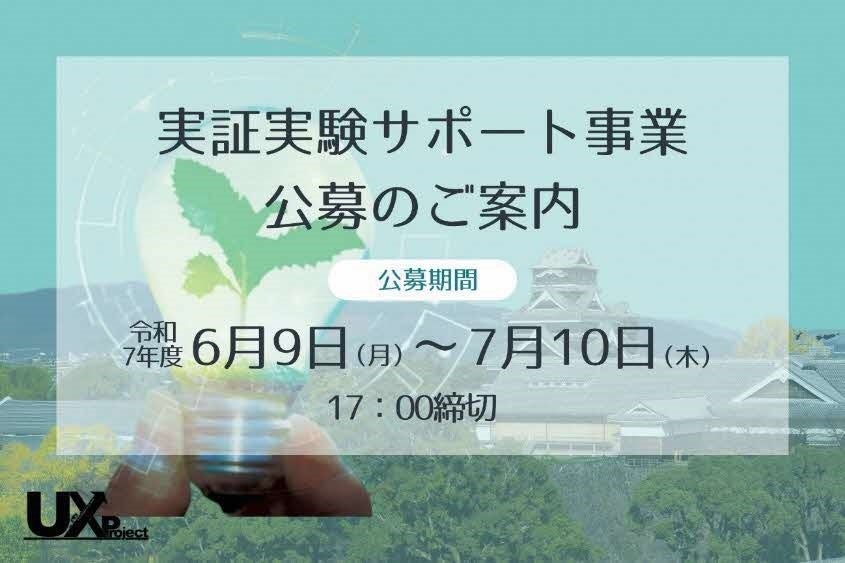 熊本県(知事:木村 敬)では、UXプロジェクトの取り組みの一環である「令和7年度(2025年度)UXプロジェクト実証実験サポート事業」の実施に伴い、6月9日(月)~7月10日(木)の期間中、実証実験の取り組みを公募しています。