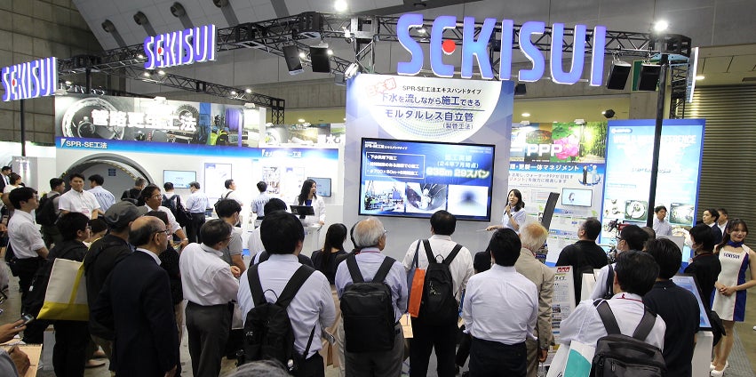積水化学は下水道展’24東京に於いて、下水道をとりまく喫緊の課題であるインフラ耐震化・長寿命化・老朽化対策や雨水・浸水・災害対策などにお応えする製品‧工法‧手法を一堂に紹介しました。中でも、日本・海外とグローバルで多くの実績のある『SPR工法』の深化した最新工法である「SPR-SE工法エキスパンドタイプ」については、展示・映像とともに、技術者も交えたプレゼンテーションで詳しく紹介しました。また、新たな取り組みとして、海外にも広く展開する積水化学の管路更生技術と実績について、英語によるプレゼンテーションも行いました。海外からのお客様にも好評で、活発な意見交換が出来ました。