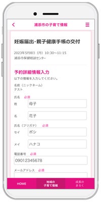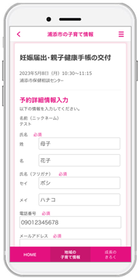 浦添市が提供を開始する「オンライン予約サービス」は、自治体の実施する子育て関連事業などの予約をオンラインで実施できるサービスです。『母子モ』の予約ページから、利用希望日時の選択や、氏名、連絡先など必要事項を入力することで、24時間どこからでも予約が可能となります。