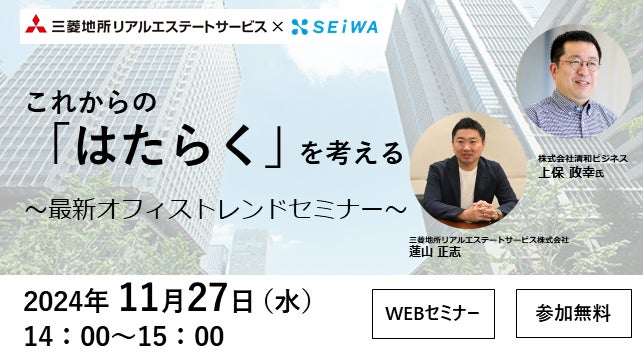 不動産総合コンサルティング会社の三菱地所リアルエステートサービス株式会社(本社:東京都千代田区)とオフィスや専門施設空間デザイン・家具のコーディネート等の提供を行う株式会社清和ビジネス(本社:東京都中央区)によるオンラインセミナーを開催いたします。