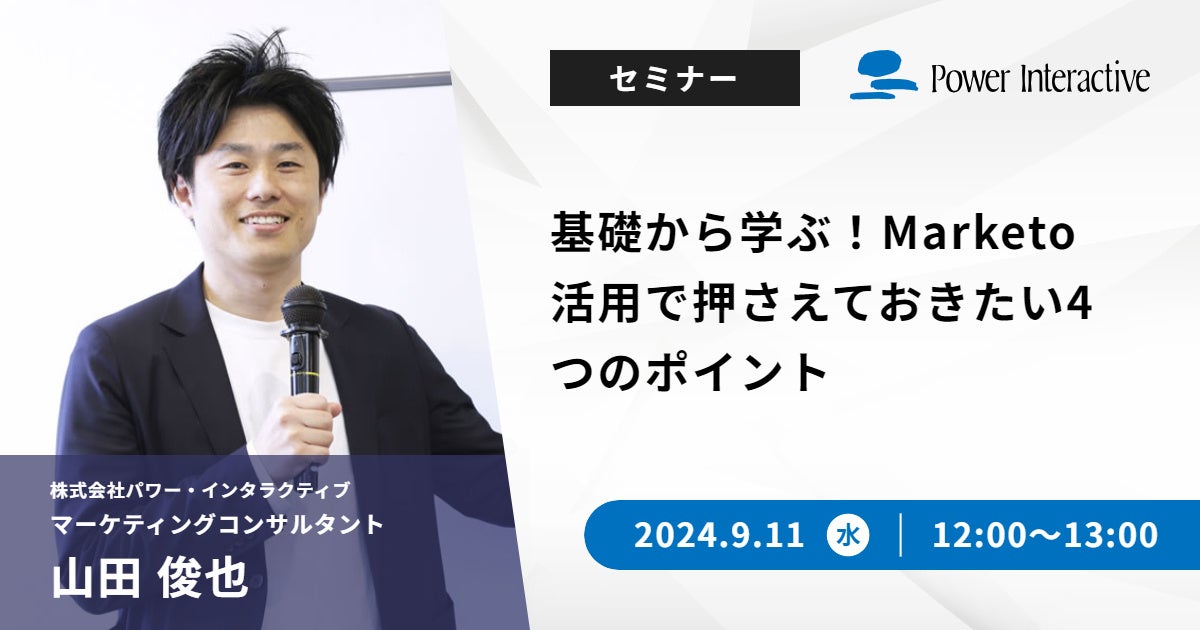 株式会社パワー・インタラクティブは、Adobe Marketo Engageユーザーを対象に、無料ウェビナー『基礎から学ぶ!Marketo活用で押さえておきたい4つのポイント』を9月11日に開催します