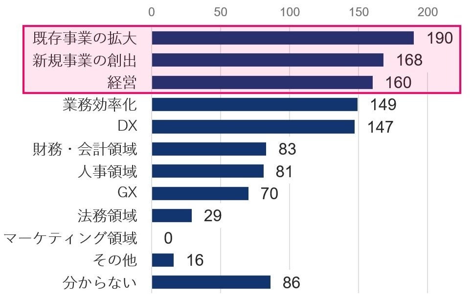 既存、新規を通した事業拡大を求めている経営者が多く、これらを達成するための市場調査、売上拡大やバックヤードの整備といった施策の知見やスキルが支援事業者には必要だと考えられます。