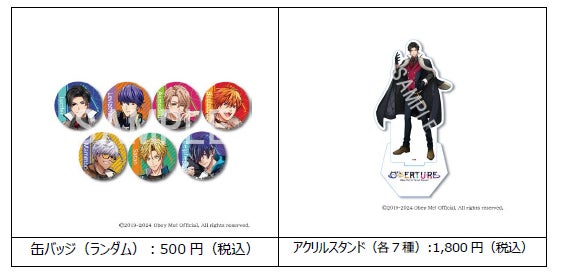 「Obey Me! 1st Virtual Concert - OVERTURE -」のキービジュアルを利用したグッズを、ライブ会場とSPWNにて販売いたします。ライブを記念したスペシャルグッズになりますので、是非、商品をお手に取ってお確かめください。