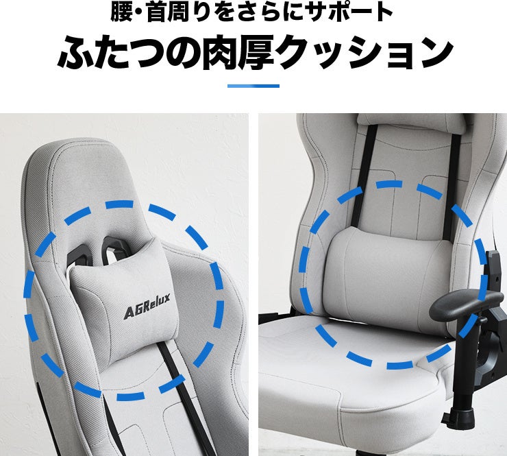 今回登場する 「AGRelux α ファブリック ライトグレー」は、AGReluxシリーズの中でも特に人気を誇る「アグリラックス α」のファブリックタイプに、「インテリアに合わせやすい色があったらいいな」というユーザーの声を反映して開発された、新色ライトグレーモデルです。従来のゲーミングチェアにありがちな派手な色合いを避け、日常空間になじむ洗練されたトーンと質感に仕上げられています。快適性はそのままに、暮らしにフィットするデザインが魅力です。
