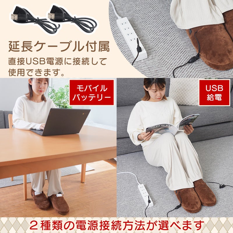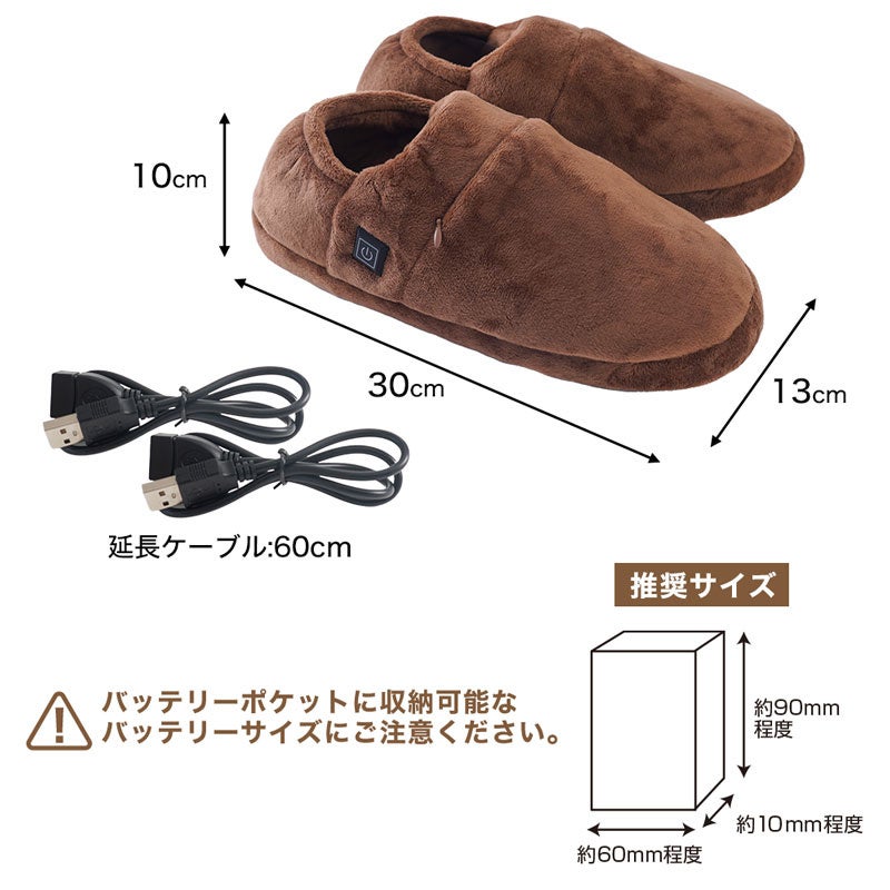 ■ヒーターを搭載したモバイルバッテリーで使えるUSBあったかスリッパ