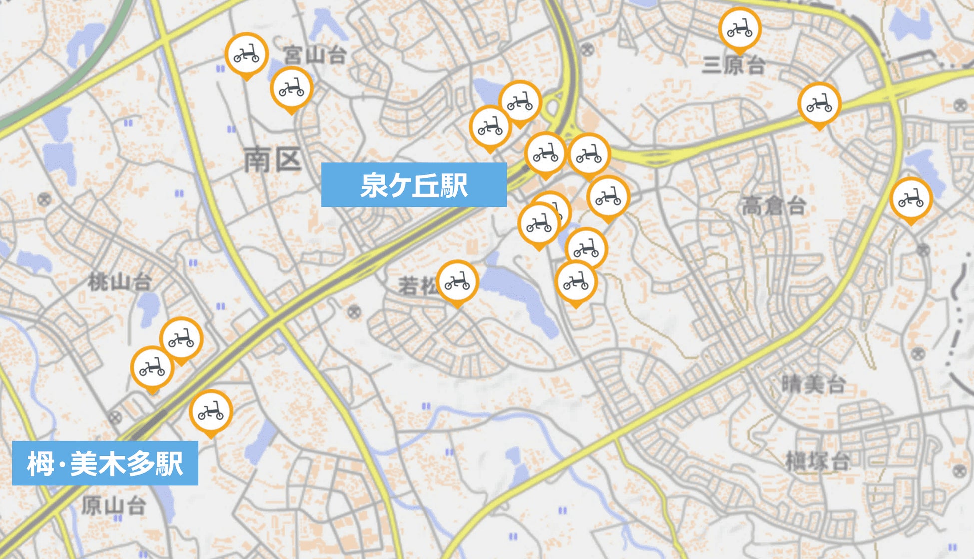 今回電動サイクルを導入するのは、スマートシティの取組を推進することで、市民の生活の質の向上と地域課題の解決をめざす「堺スマートシティ戦略」において、重点地域と定める泉北ニュータウン地域です。実証事業は、SENBOKUスマートシティコンソーシアム(※2)における「モビリティWG」の取り組みの一環として実施します。泉北ニュータウン地域に設置している電動アシスト自転車が利用できる既存のステーション12カ所にラックを増設し電動サイクルに対応させる他、新たに公園や公共施設に6カ所のステーションを設置し、計18カ所のステーションに電動サイクル50台を導入します。これにより、泉北ニュータウン地域では、電動アシスト自転車に加えて電動サイクルが利用できることになります。泉北ニュータウン地域は、地形に高低差があり、シニアの方々も多く生活しています。駅を起終点とする路線バスも充実している同エリアに、新しい移動の選択肢として、若い世代から免許返納後の高齢者まで幅広い年齢層の方が利用できる新しいモビリティ「電動サイクル」を導入することで、多世代が快適に自立移動できる環境の構築を目指します。