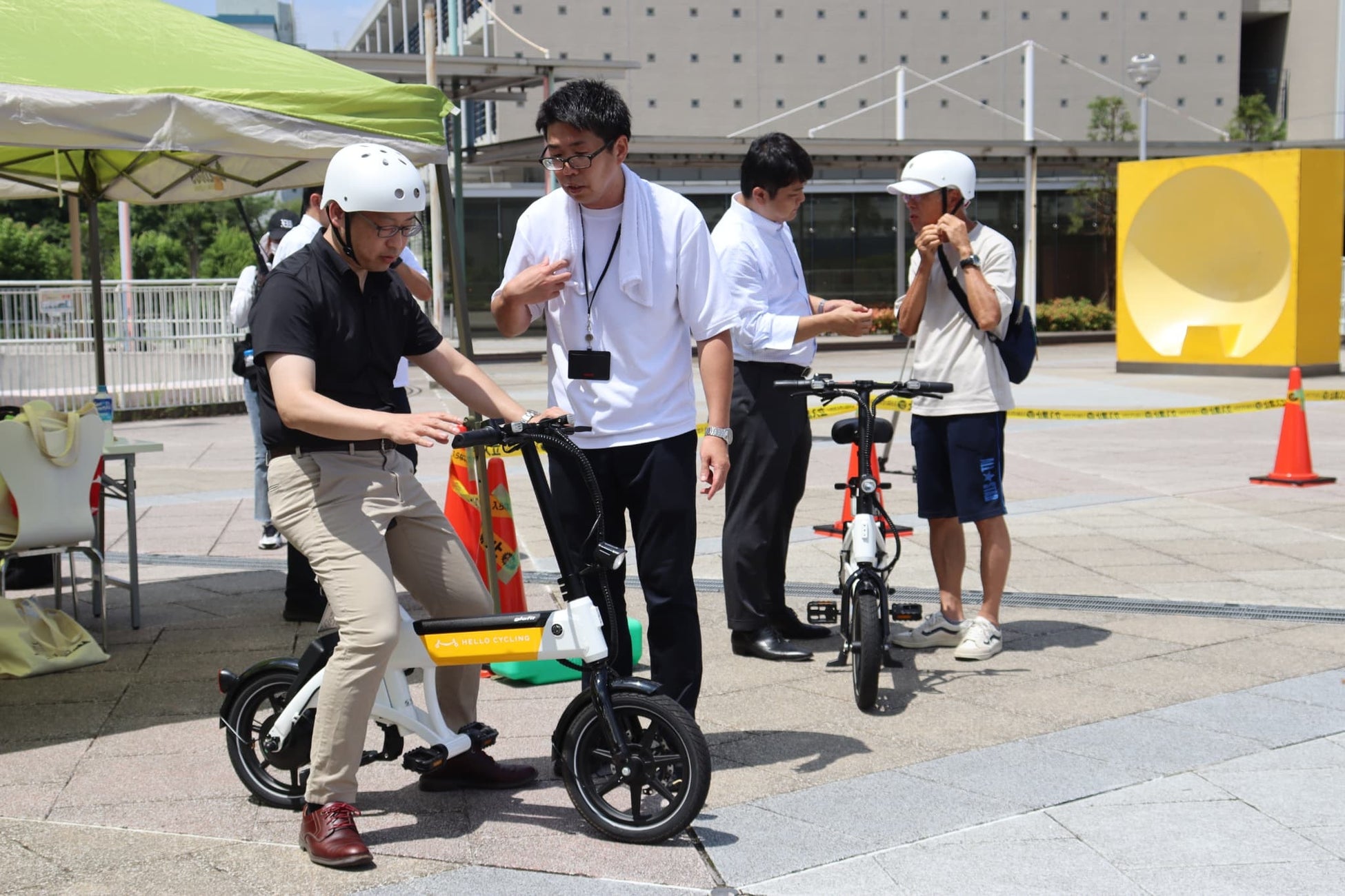 電動サイクル導入初日に、泉北ニューデザイン推進監 羽間 真一さま、南区役所 区⻑ 中山 真裕美様さま、OpenStreet 代表取締役社長CEO 工藤が登壇したオープニングセレモニーを実施しました。また、交通安全講習会で電動サイクルをはじめパーソナルモビリティに関する正しい交通ルールや安全な利用方法についてお伝えした他、操作方法や乗り心地などを体験していただける試乗会を行いました。