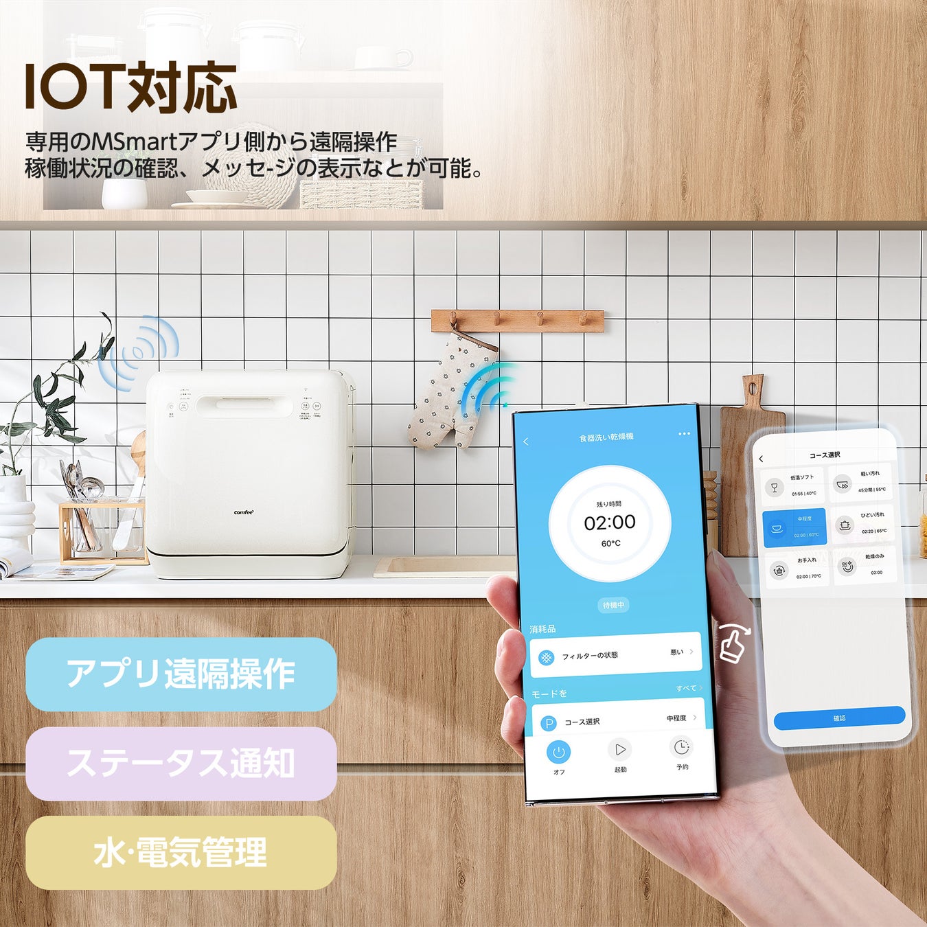食器洗い機のボタンで直接操作できるだけでなく、COMFEE'初のIOT技術を採用した食器洗い乾燥機として、携帯電話で遠隔操作できます。MSmartHomeアプリで食洗機の状態通知を受け取り、いつでもどこでも食洗機の進捗状況を知ることができます。