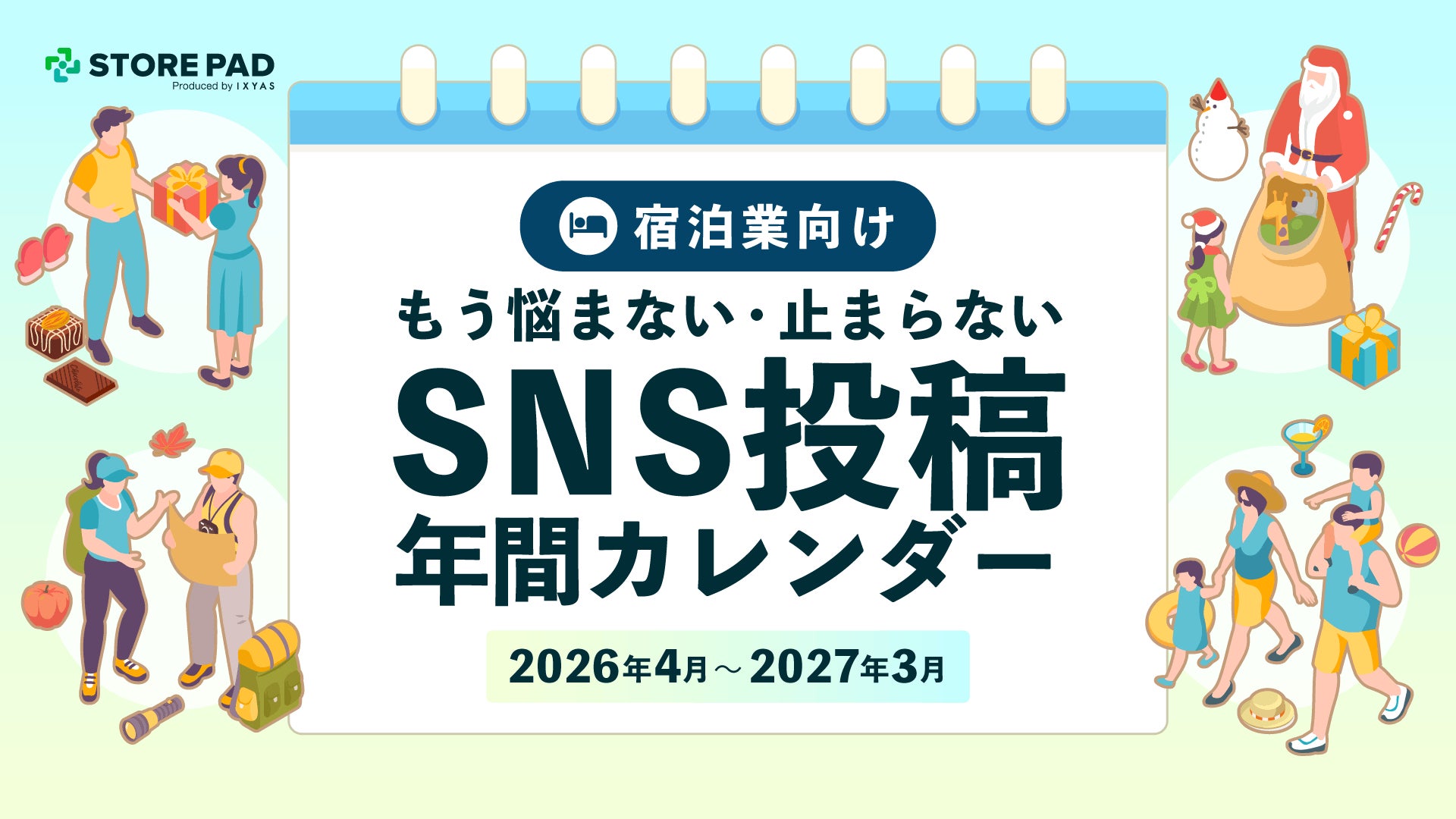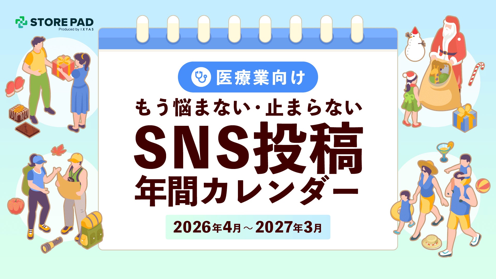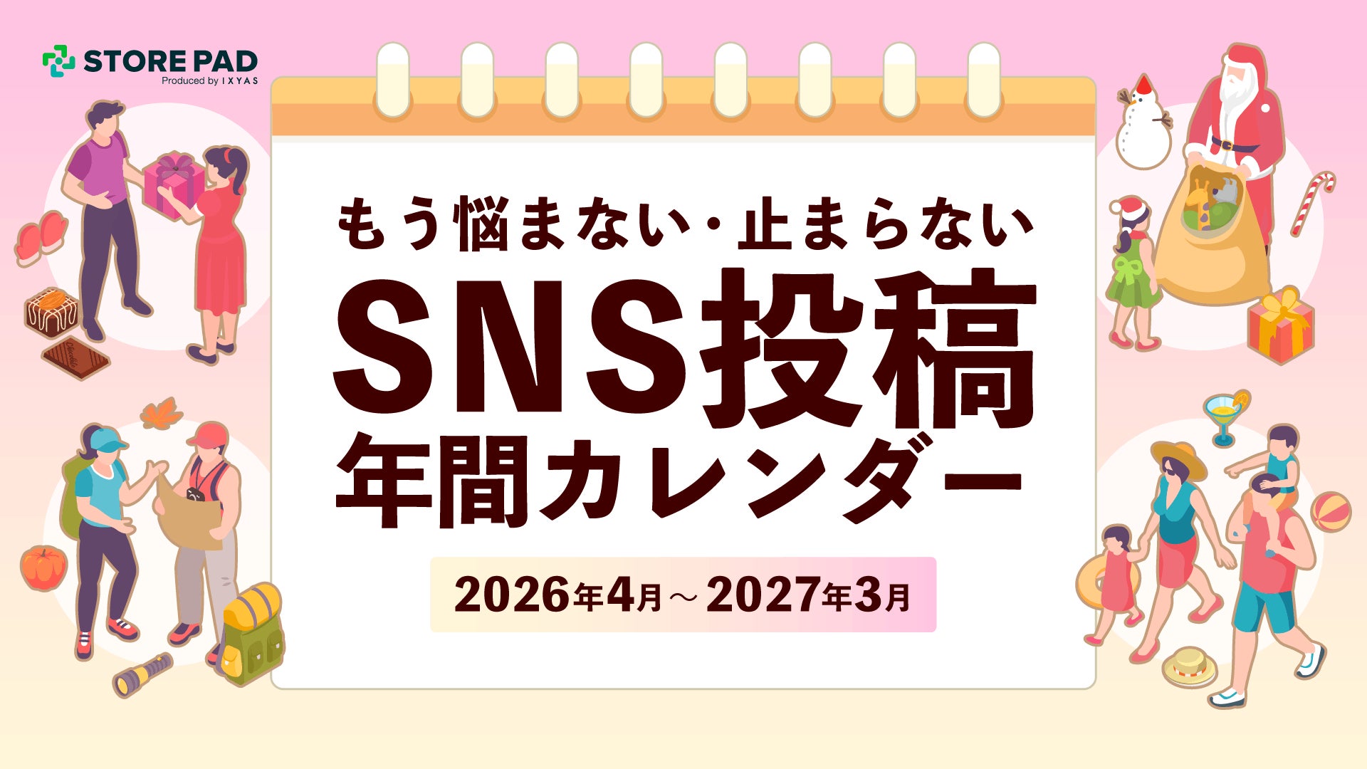 AI搭載型の店舗情報発信・分析プラットフォーム「STOREPAD(ストアパッド)」を提供するイクシアス株式会社(本社:東京都中央区、代表取締役社長 CEO:内藤 崇司)は、飲食・宿泊・医療・美容の各店舗事業者を対象とした、新年度(2026年4月〜2027年3月)のSNS運用をサポートする『「もう悩まない・止まらない」業界別SNS投稿年間カレンダー』を、本日4業界一斉公開いたしました。