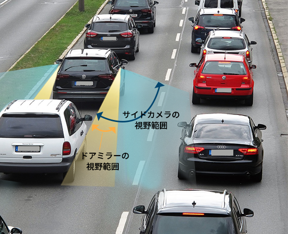 120°広角レンズを搭載しており、従来のドアミラーよりも広い視野角を提供できます。交差点や駐車場などの複雑な環境下でも、障害物や他の車両との距離を正確に把握することができます。