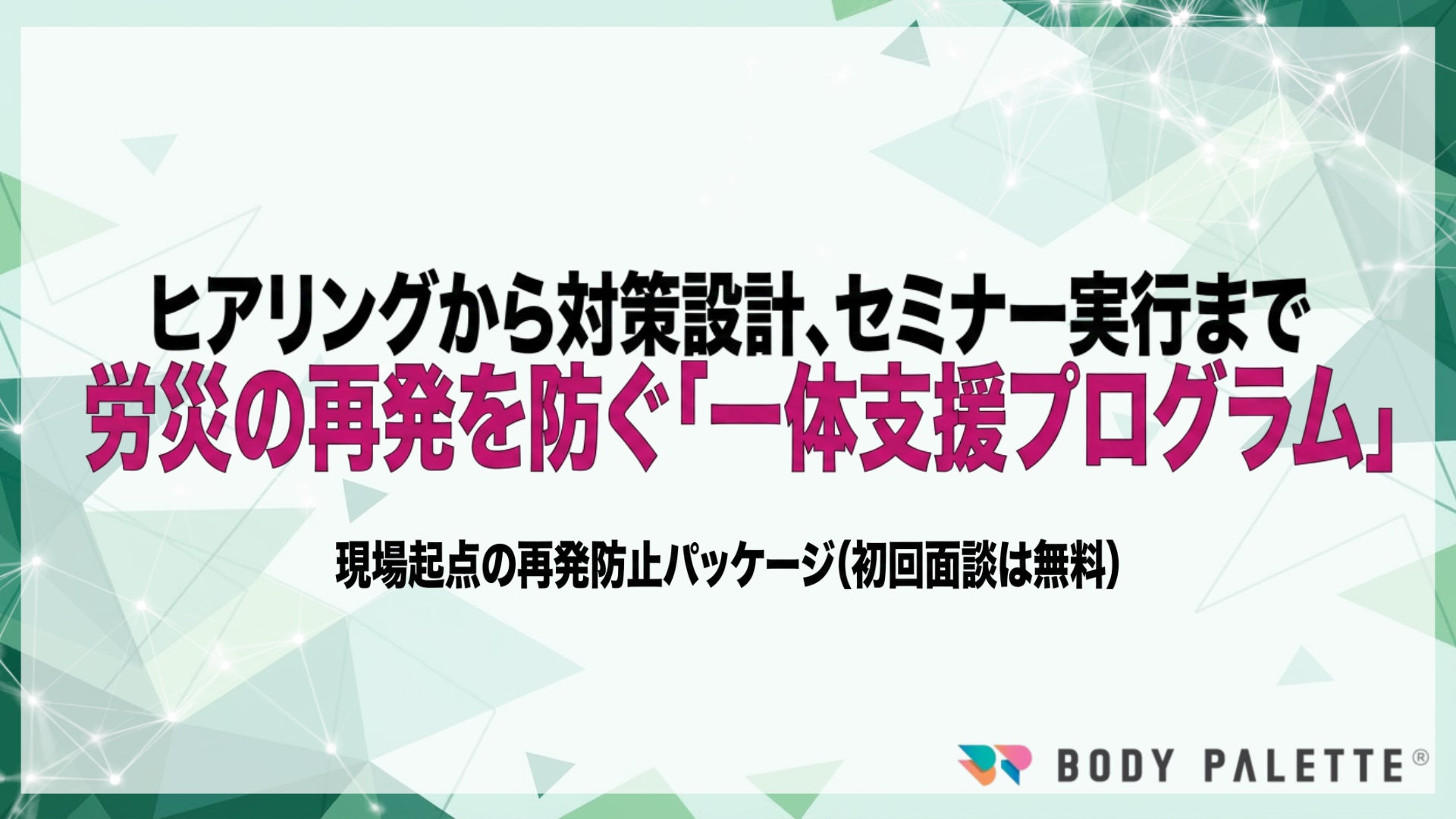 【7分野19項目の健康・安全対応】労働災害の発生件数割合の低減に向けた「現場起点の再発防止プログラム」を提供開始(初回面談は無料)