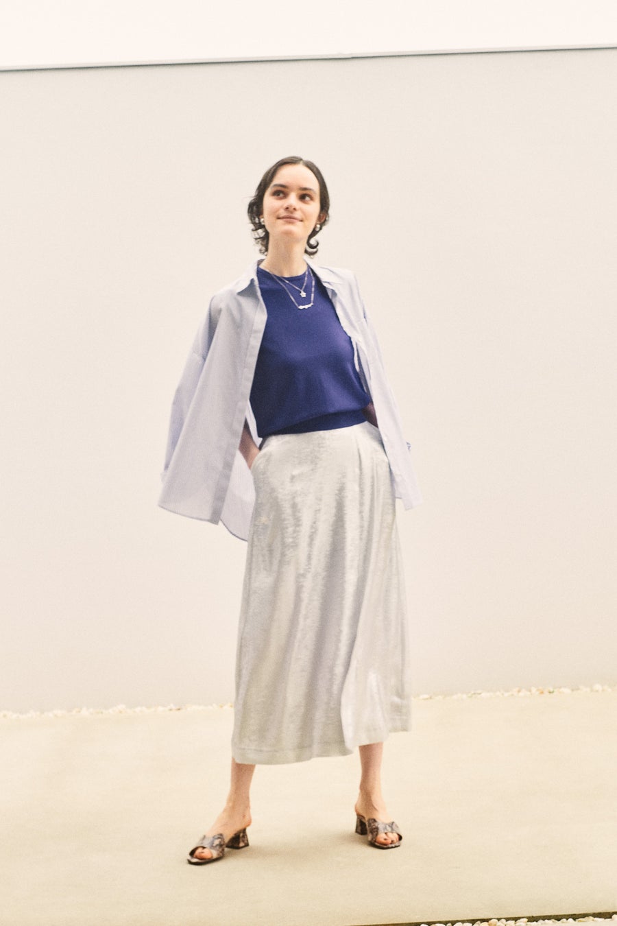 お家洗いOKでシワになりにくい「イージーケア性」を重視しつつ、快適な着心地とキレイ見えをキープ。LOUNIEならではの素材選びが鍵。