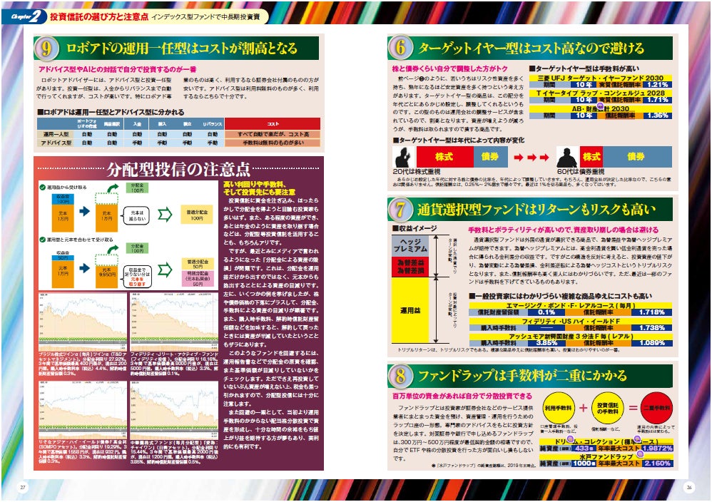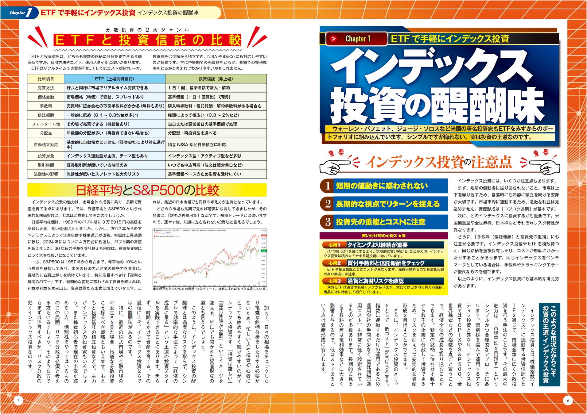 投資信託の選び方からインデックス型投資信託の商品までやさしく解説。また、分配金を売りにしている投資信託の注意点など、マイナス要因も解説。広告なしの本誌だからできる記事です。