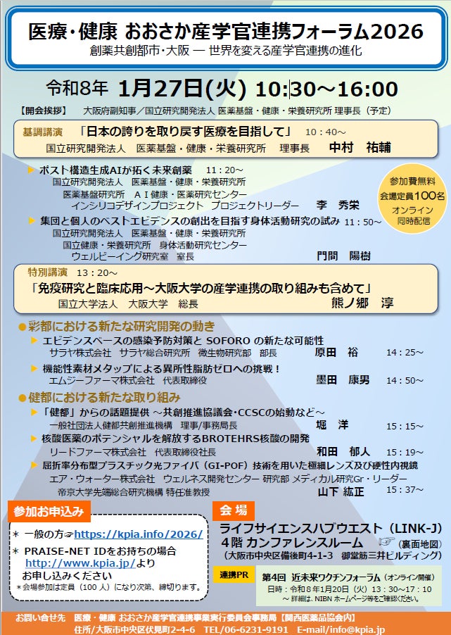 「医療・健康おおさか産学官連携フォーラム2026」を開催します!(2026年1月27日(火))