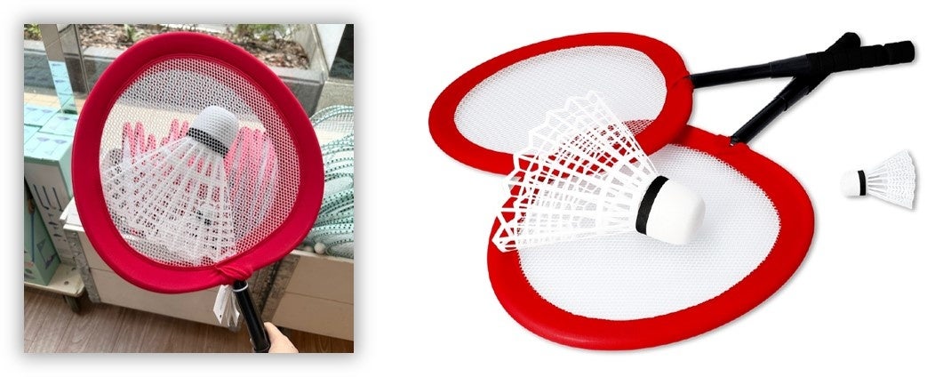 手に持っているだけで笑顔がこぼれちゃう!30.5cm×60cmの巨大バドミントン。シャトルは通常サイズの3倍です。
