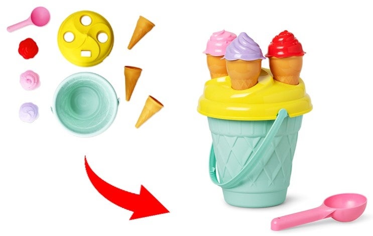 暑いビーチで涼しげなアイス屋さんごっこができます。
