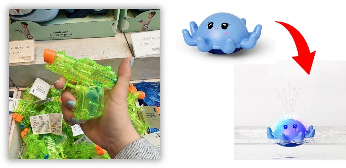 お手軽水遊び。ミニサイズだから収納も気にならない!水シューティング&タコの水しぶきで、楽しい+クールダウン!