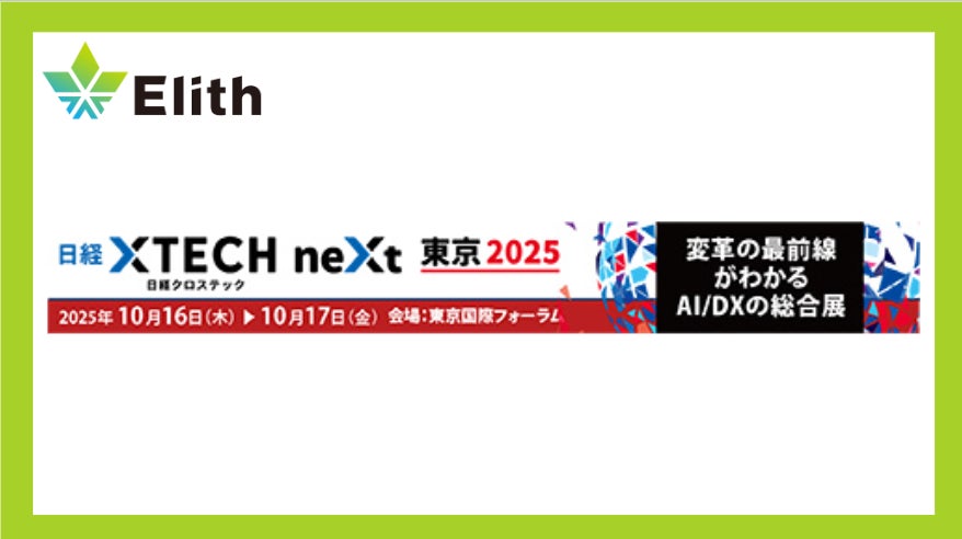 株式会社Elithは、2025年10月16日(木)〜10月17日(金)に東京国際フォーラムで開催される「日経クロステックNEXT 東京 2025」に出展いたします。