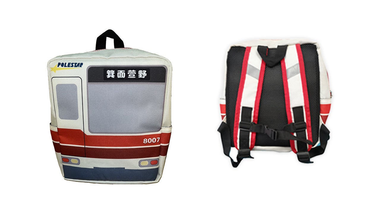 8000形デザイン。軽くて背負いやすく留め具付きで、肩紐もずり落ちにくくなっています