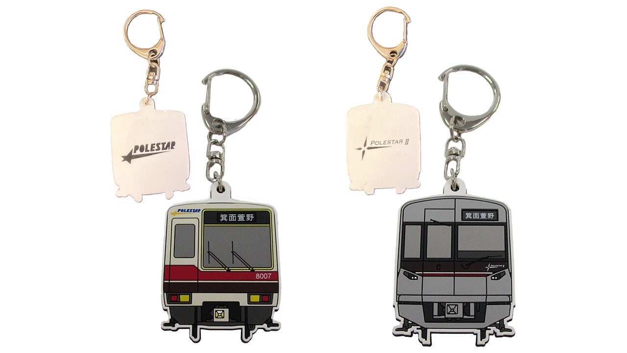 8000形、9000形ともに「箕面萱野」行先表示のラバータイプキーホルダー