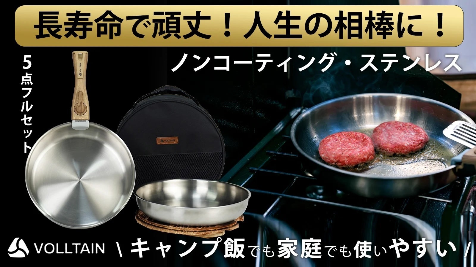 家でも外でもノンコーティング・ステンレス【VOLLTAINフライパン・鍋セット】Makuakeで発売決定!