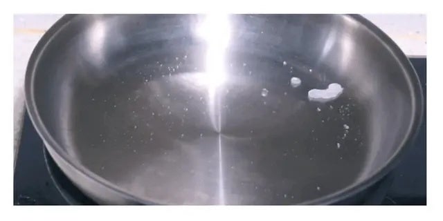 2.水を入れて水滴が転がる状態になるまで加熱する