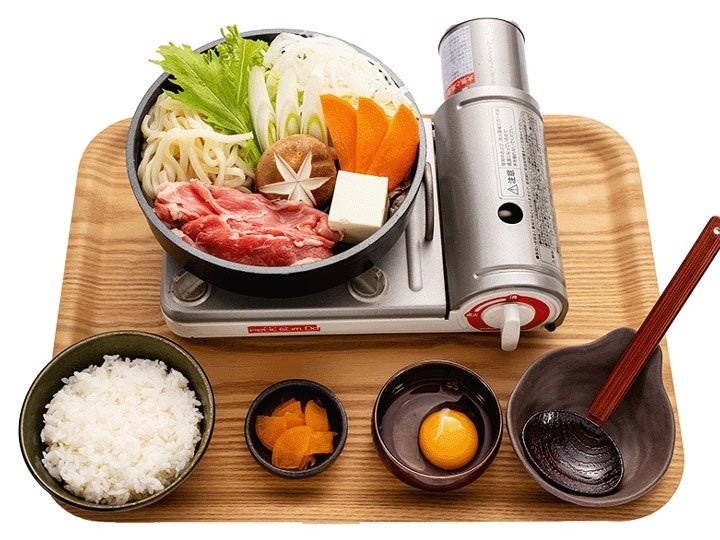 ※定食屋宮本むなし、各店舗内で「牛すき焼き鍋定食(980円税込み)」1人前をお召し上がりいただけます。(めしや宮本むなしではご利用不可となります。)