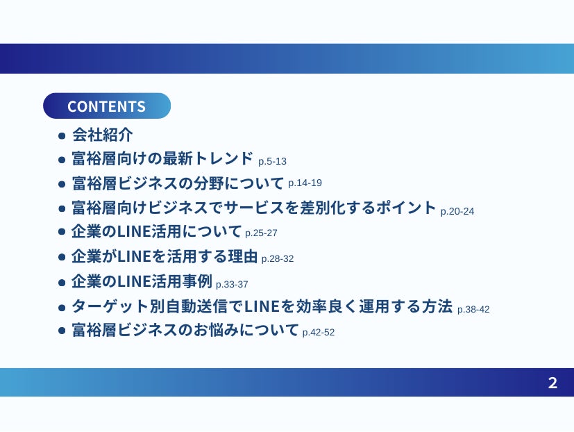 本レポートでは、業界別の事例や弊社の実績をもとに具体的なLINEの活用方法を理解していただけます。富裕層向けビジネスでLINEを用いた効果的なサービスの差別化方法をご検討されている方におすすめの内容です。