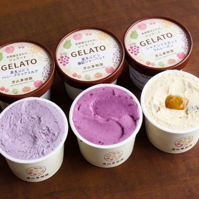 漆山果樹園のオリジナルジェラートは、原材料のぶどうはもちろん自家栽培で、牛乳は北海道産または山形県産、生クリームは北海道産と産地にもこだわっており、一般的に使用されることが多い乳化剤や増粘剤を使用せずに製造しています。他では味わえない濃厚な風味と、舌触りも滑らかな出来立てジェラートをお届けします。お友達やご家族とのティータイムのお供に、ちょっと贅沢なジェラートをお楽しみください。