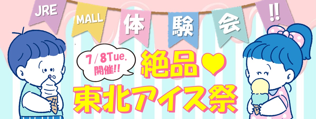 JR東日本東北総合サービス株式会社(本社:宮城県仙台市、代表取締役社長:松木 茂)は、東日本旅客鉄道株式会社東北本部と株式会社JR東日本びゅうツーリズム&セールスと共同で、JRE MALL ショッピング内の「東北MONO WEB SHOP」の商品を実際にご試食いただきながらJRE MALLを体験していただけるイベント“JRE MALL 体験会~絶品♪東北アイス祭り~”を開催します。