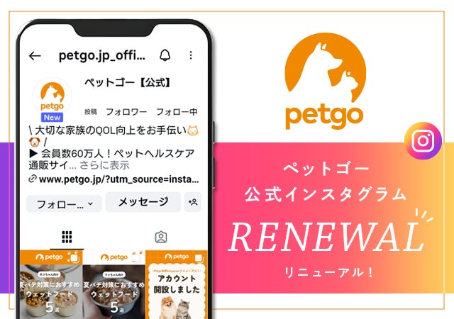 ペットゴー株式会社(本社:東京都中野区、代表取締役社長:黒澤弘、証券コード:7140、以下「当社」)は、このたび、公式Instagramアカウントをリニューアルし、新たに情報発信を開始したことをお知らせします。2025年4月にグループにジョインしたペットメディア企業・株式会社FLAFFY(本社:東京都中野区、代表取締役社長:廣田智沙、以下「FLAFFY」)が、今回より当社Instagramアカウントの運用を担当します。これにより、FLAFFYが培ってきたSNSマーケティングのノウハウを活用し、ペットオーナーとのつながりをより一層強化していきます。