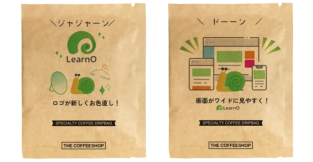 Mogicでは、LearnO10周年を記念したノベルティグッズとして、「LearnOオリジナルドリップコーヒー」と「LearnOオリジナルハンディファン」を製作しました。ドリップコーヒーは限定プレゼントし、ハンディファンは現在LearnOをご契約いただいているお客様全員に贈呈いたします。