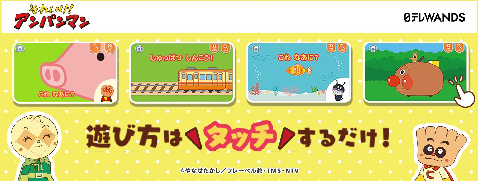 日テレWands(本社:東京都港区、代表取締役社長:鈴木 重利)は、NTTドコモの知育サービス「dキッズ®」向けに「あそんでまなぼ!アンパンマンとこれなあに? for dキッズ」をリリースいたしました。