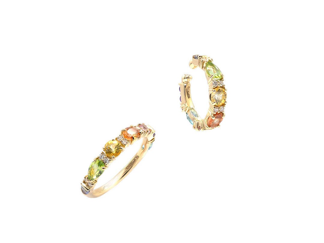 ダイヤモンドとカラーストーンとのリズミカルなコンビネーションが大人の遊び心を感じさせます。