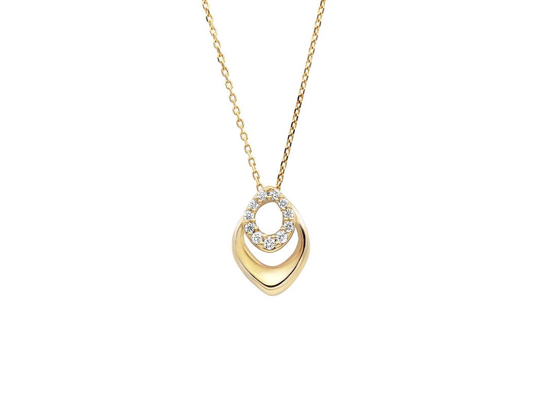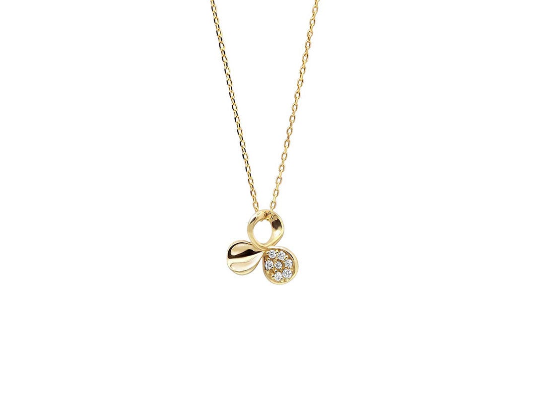 春の芽吹きをイメージしたネックレス。芽が膨らみ重なり合う葉の柔らかなフォルムを、ダイヤモンドとイエローゴールドの立体的な二段構造で表現しました。ダイヤモンドの煌めきが若葉の瑞々しい様子を思わせる、春の装いにぴったりなデザイン。