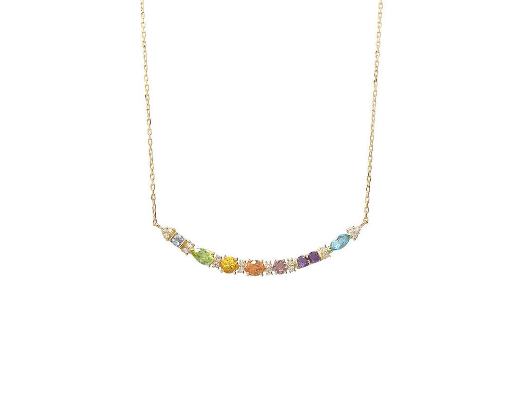 冬から春にかけて少しずつ空気が潤い、柔らかな光の中にあらわれる春の虹、「初虹」からインスピレーションを得たネックレス。心躍る春の訪れを7色のファンシーカットストーンで描いた、彩り豊かなジュエリーです。