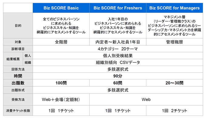 ③ Biz SCORE for Freshers(新入社員・内定者向けビジネススキル診断テスト)