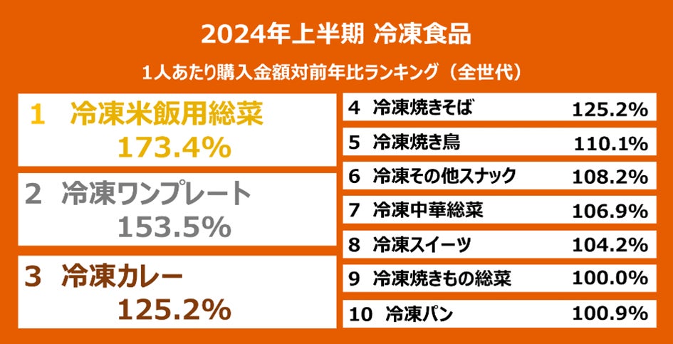 1)2024年上半期冷凍食品ランキング1位は「冷凍米飯用総菜」