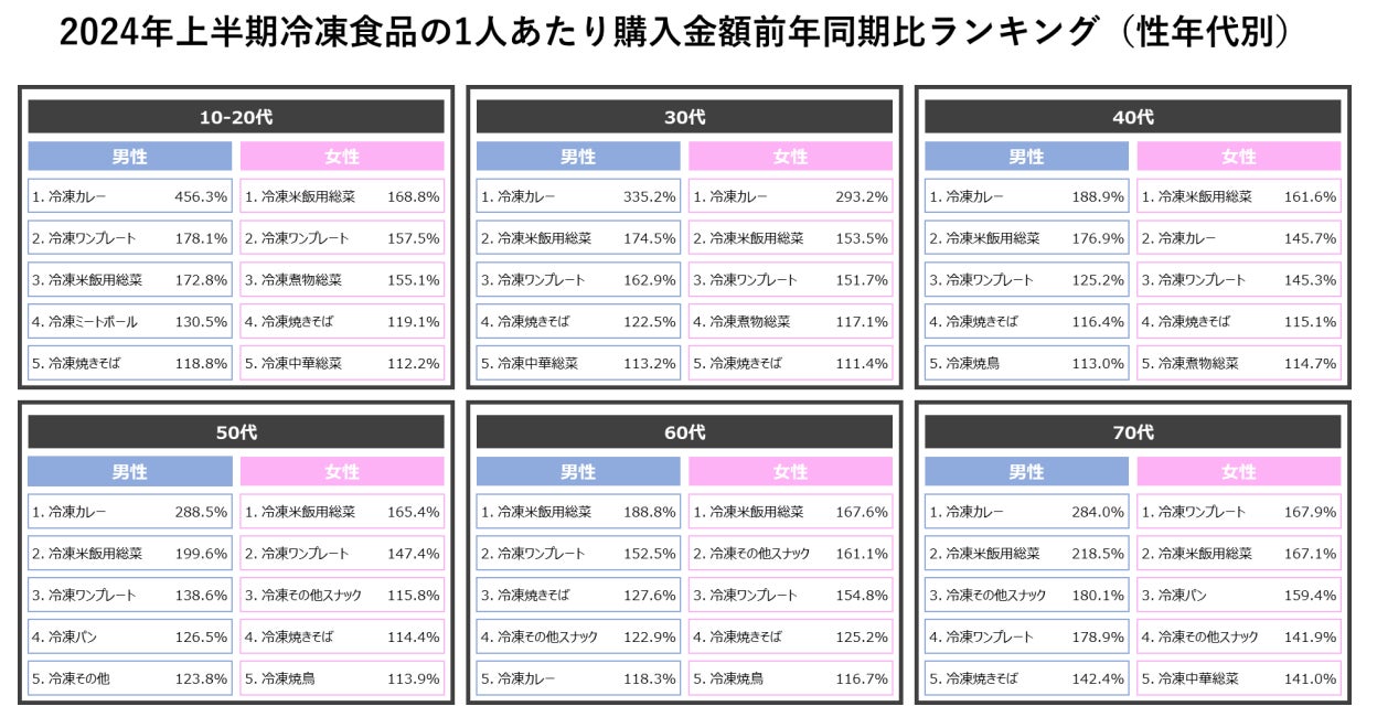 「冷凍ワンプレート」は10-20代男性、70代男性ともに対前年比170%超